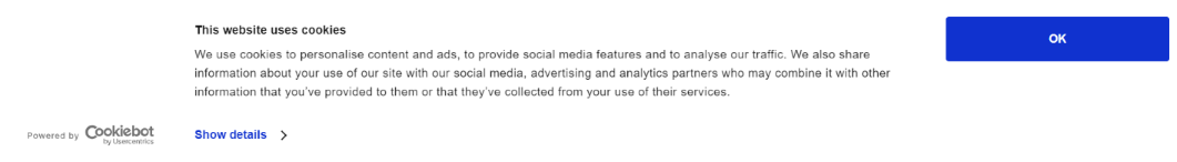 Cookie Bot will block all cookies except those strictly necessary from being set until you have given your consent. When you visit our website for the first time, a message will be displayed on the screen for you to choose your initial cookie settings and confirm your acceptance.